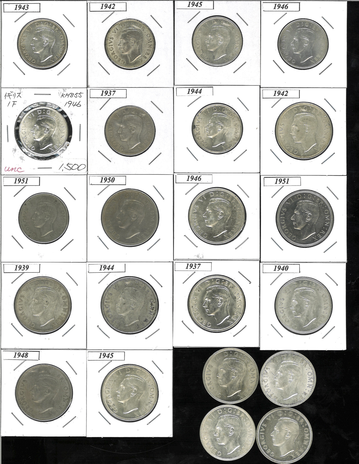 GREAT BRITAIN George VI ジョージ6世(1936~52) Florin 1937,42,43,44,45,46(×2),51//1/2Crown 1937(×2),39(×2),40,42,44,45(×2),46,48,49,50,51 返品不可 要下见 Sold as is No returns AU~UNC。S-4081,4107,4080,4106 KM-855,878,856,879,返品不可 要下见 Sold as is N ...
