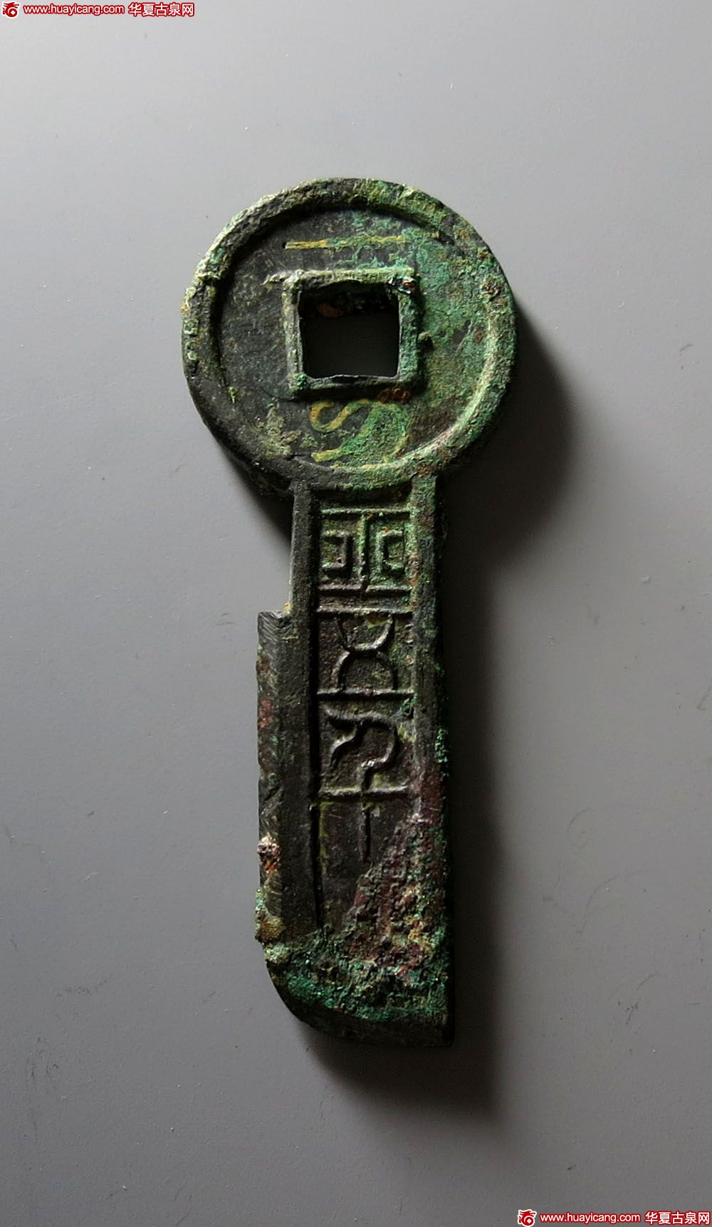 王莽新朝契刀五百,重16.7克,华夏评78分. 古钱. Xin Dynasty, Qi Dao Wu Bai (loosely translated a knife 500 cash), 74.5*3.1mm, weighs 16.7 grams,Huaxia 78