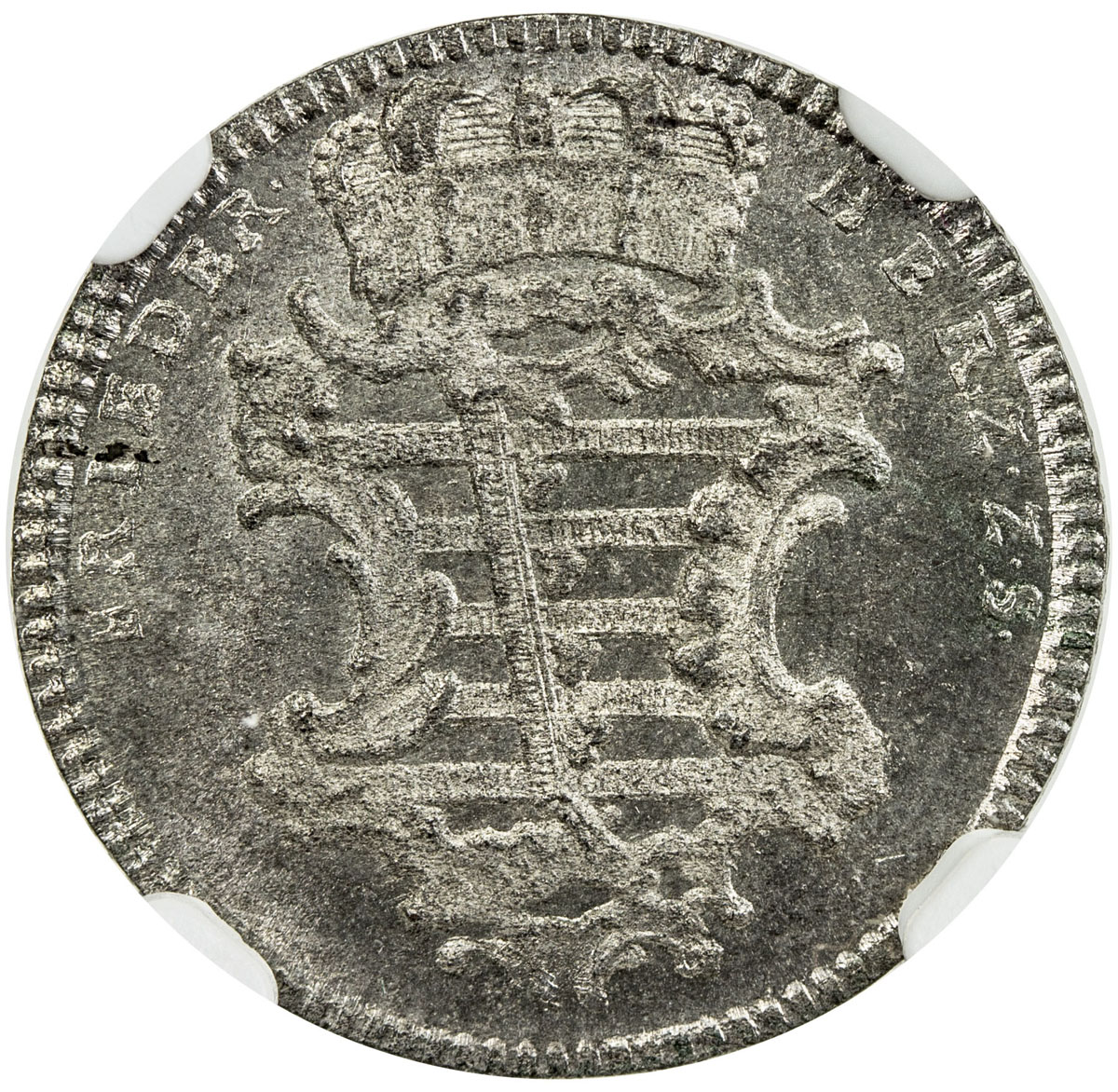 World Coins - Europe,SAXE-GOTHA-ALTENBURG: Friedrich III, 1732-1772, BI 6 pfennig, 1758-LCK, Cr-14, beautiful light tone on mark-free surfaces, the only piece so far graded by NGC for the type, NGC graded MS66.