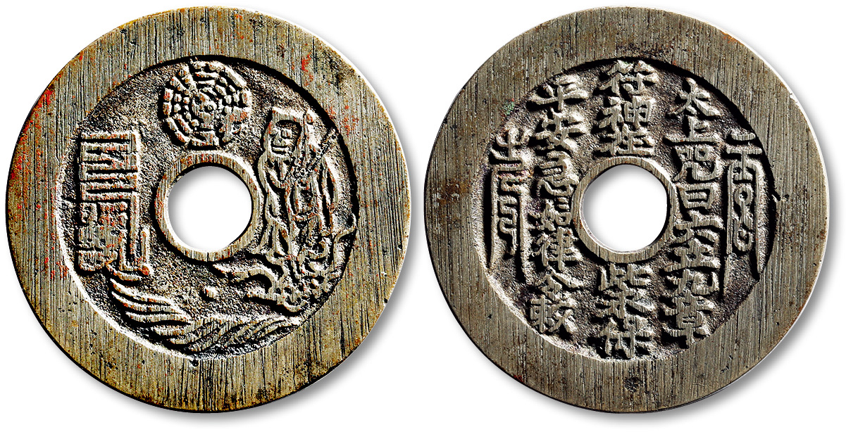 神仙人物太上咒大型花钱,直径59.5mm,美品