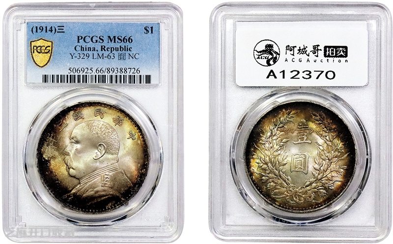 4: 袁世凯像民国三年壹圆中央版 PCGS MS 66,估价: RMB 10000,成交价格:RMB 172500,拍卖公司:北京阿城哥,拍卖专场:北京阿城哥2025春拍-钱币专场,成交时间: 2025-05-25 19:30:00。 对行情比较了解的朋友应该会发现,在目前的收藏市场中,即使是出现行情不太理想的情况下,袁大头的市场价格也不会出现大幅度下跌的情况,因此这也成为了大家收藏的首选,从袁大头的通货价格,就能够体现出他的收藏价值最高的,再加上背景历史的加持之前,市场价格还会越长越高,而且能够在市面上流通的袁大头并不多,很多商家也会因此抬价,并且在抬价之后,依旧有收藏者愿意购买。