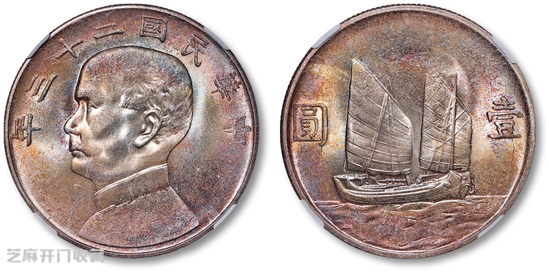2:孙像船洋民国23年壹圆普通 PCGS MS 64PL,估价:RMB 70000 - 80000,成交价格:RMB 105800,拍卖公司:南京三省,拍卖专场: 南京三省2025春拍-钱币专场,成交时间:2025-04-26 18:00:00。 虽然现在网络时代非常发达,线上的交易情况确实也比较理想,但是成交价格却出乎大家意料,有可能是因为现在社会经济条件不太可观,所以导致市场流通性变弱,因此一些商家在必要的时候只能够通过降低银元的价格减少利润,维持正常的经营。还有一个方面是现在正处于银元的冷静期,也就是大家所说的价格调整阶段,这个时候的船洋银元价格下滑,虽然看似是不乐观的,但如果我们从另外一个角度来说,对于消费者还是比较有利的。