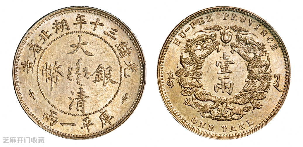 2:湖北省造双龙一两小字 PCGS AU 58,估价:RMB 300000 - 600000,成交价格:RMB 862500,拍卖公司: 中贸圣佳,拍卖专场: 中贸圣佳2025秋拍-纸钞/卡牌/金银锭/机制币,成交时间: 2025-12-22。 大家应该都清楚,在最近两年黄金的价格一直都处于上涨状态,特别是在今年黄金的价格,已经突破到了1000元甚至快达到1500元了。银价也是同样的处于上涨状态,而且从今年的行情来看,上涨幅度也是有史以来最大的。目前的收藏市场中有一个现象是,很多假币的价值都比真币的价值还要高,毕竟有的假银元的的确确用的都是真银,而现在银价已经快上涨到了20元一克,如果银价继续以这样的状态上涨的花,价格还是非常可观的,大家也要相信一句话,能做老板的无非两种人,一种是聪明人,一种是有钱人。
