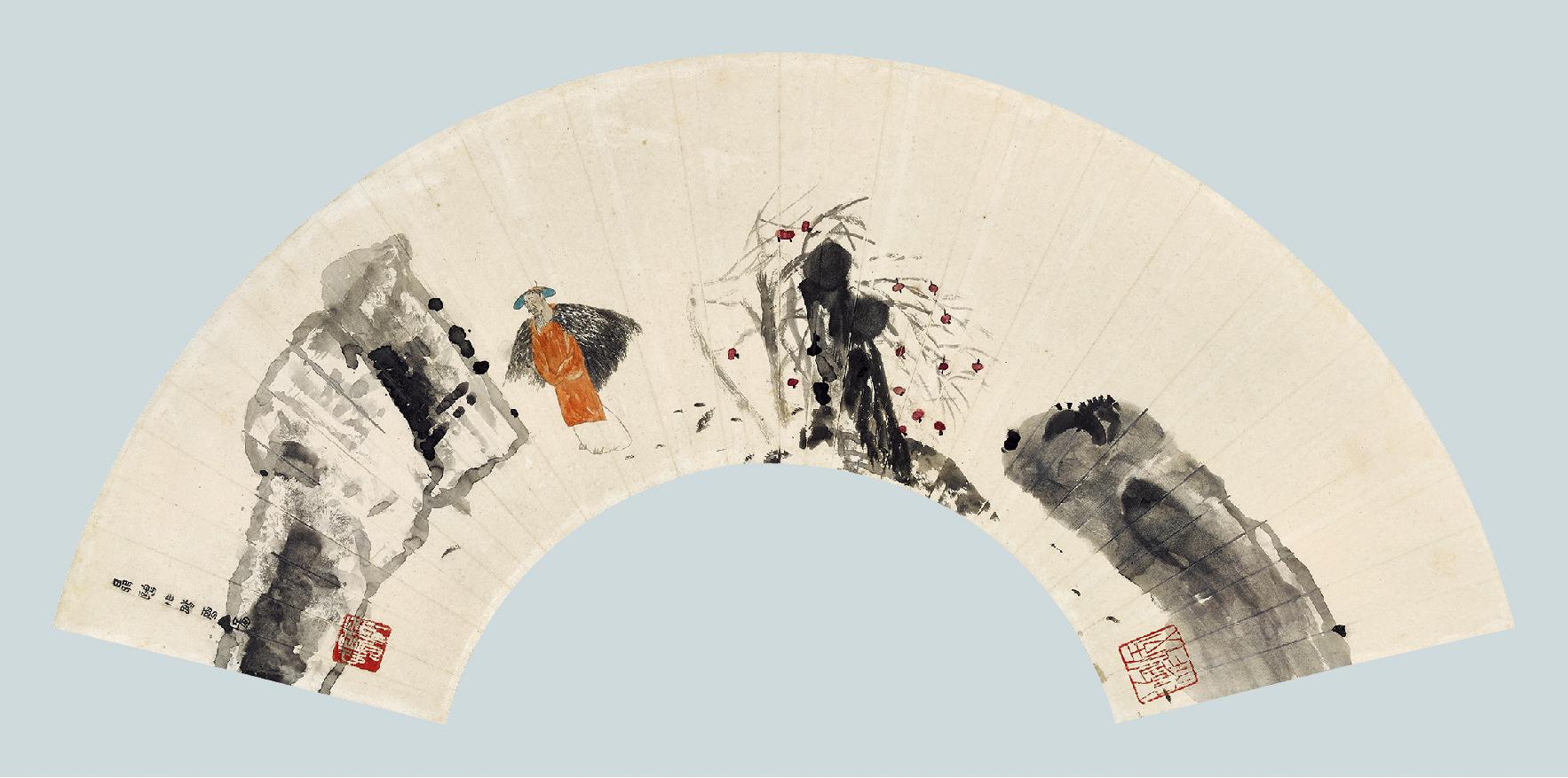 聂鸥 秋林拾果 ,估价:(人民币):12,000-18,000元;成交价格:13800元;出售公司:诚轩;出售专场:2014春季拍卖会中国书画(二);成交时间:。聂鸥(b.1948)秋林拾果,尺寸:44.8×68.5cm.约2.8平尺。镜心设色纸本。1987年作。题识:一九八七年春月,聂鸥作。钤印:聂鸥。 ...